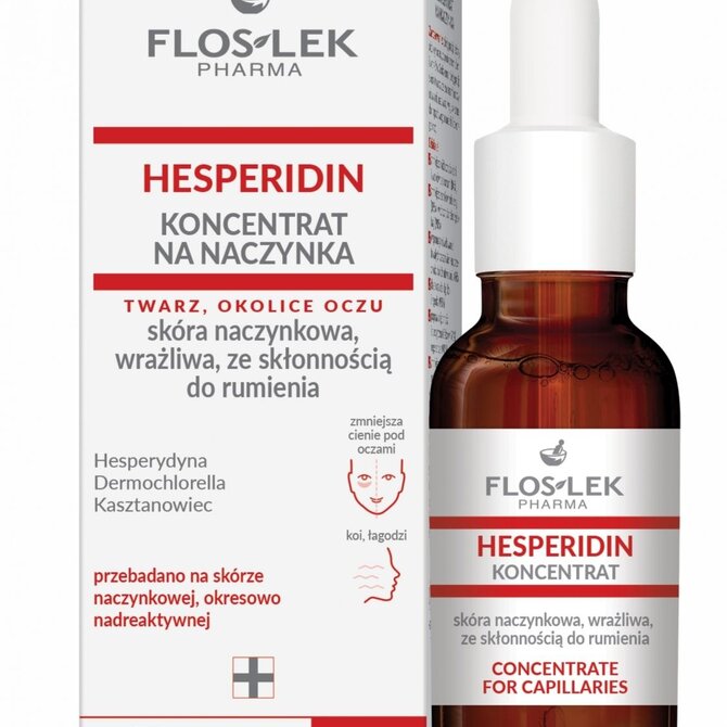 Koncentrat na naczynka z hesperydyną, dermochlorellą i kasztanowcem przeznaczony do pielęgnacji cery naczynkowej, wrażliwej, ze skłonnością do rumienia.