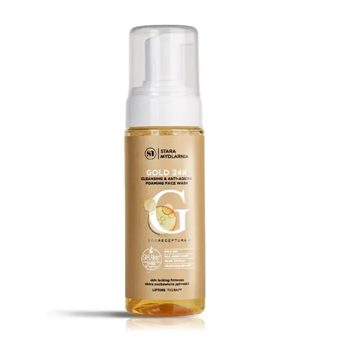 Aksamitna pianka do mycia twarzy z 24 karatowym złotem, ekstraktem z pereł, aminokwasami jedwabiu, betainą roślinną, olejem arganowym i babassu doskonale oczyszcza skórę.
