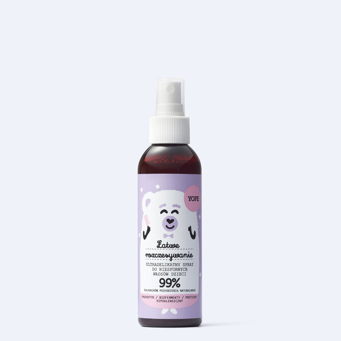 Spray do dziecięcych i plączących się włosów, o ultradelikatnym, hipoalergicznym składzie, który bezwzględnie poradzi sobie z każdym kołtunem. Powitaj w domu Łatwe rozczesywanie!