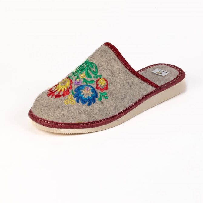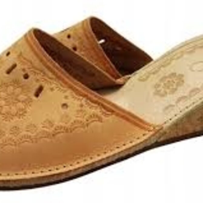 KAPCIE SKORZANE DAMSKIE GORALSKIE Z ZAKRYTYM PALCEM NA PLASKIEJ PODESZWIE
