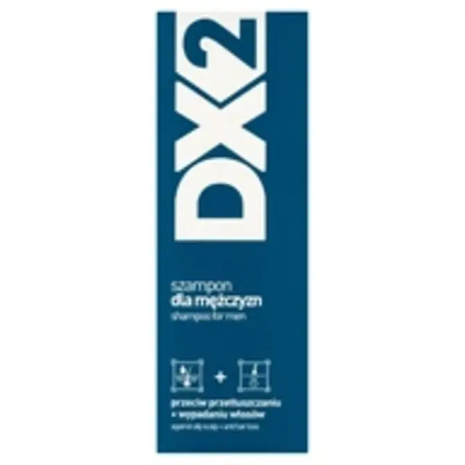 Szampon DX2 przeciw wypadaniu włosów, zawiera Pronalen Fibro-Actif, który działa odżywczo na włosy, wzmacnia i odbudowuje ich strukturę.