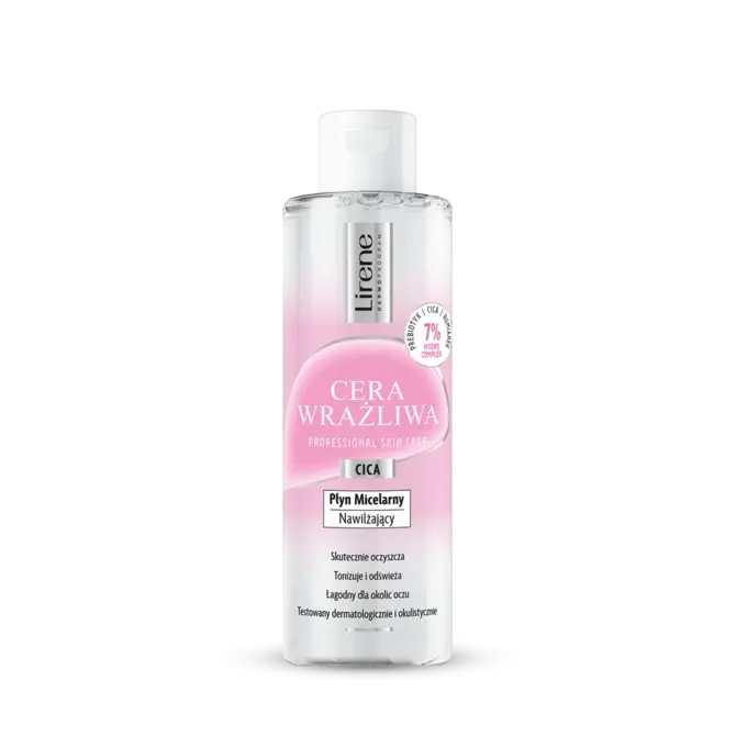 Nawilżający płyn micelarny zapewnia efektywne oczyszczanie, demakijaż i tonizację. Dzięki składnikom aktywnym, takim jak: cica, 7% kompleks nawilżający, prebiotyk i hydrolat z rumianku, nawilża, jednocześnie niwelując uczucie suchości i napięcia skóry. Pr