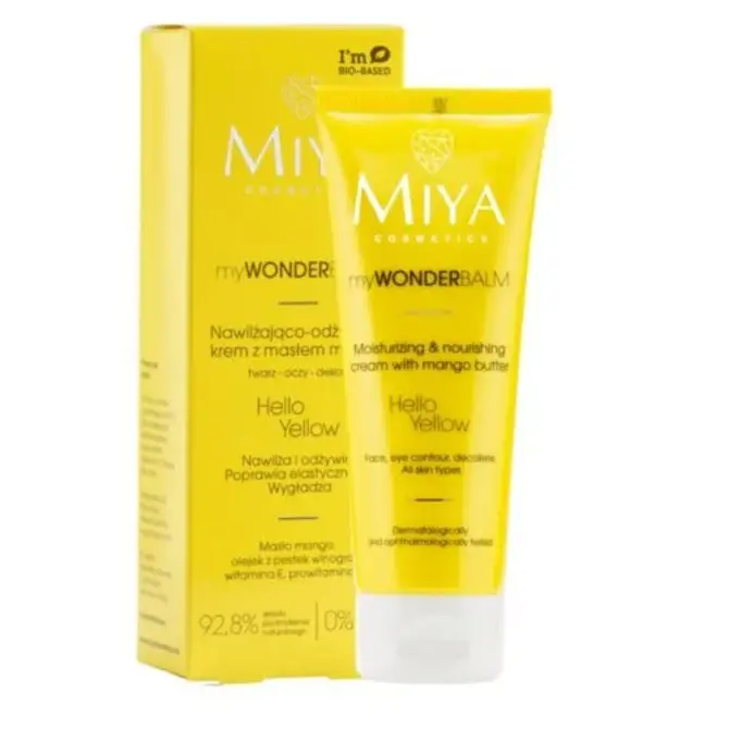 Miya Cosmetics Hello Yellow Nawilżający Krem Odżywczy z Masłem Mango. Wielofunkcyjna formuła do każdego rodzaju skóry, w tym wrażliwej, zwłaszcza szarej z przebarwieniami i mieszanej. Lekka formuła o wyjątkowym, apetycznym zapachu Mango Lassi została wzbo