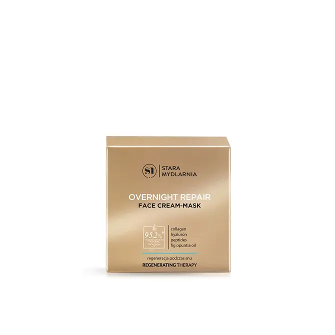 Krem-maska OVERNIGHT REPAIR Stara Mydlarnia wzbogacona kolagenem morskim, kwasem hialuronowym, peptydami oraz luksusowymi olejami i witaminami to kompleksowe rozwiązanie dla wymagającej skóry,