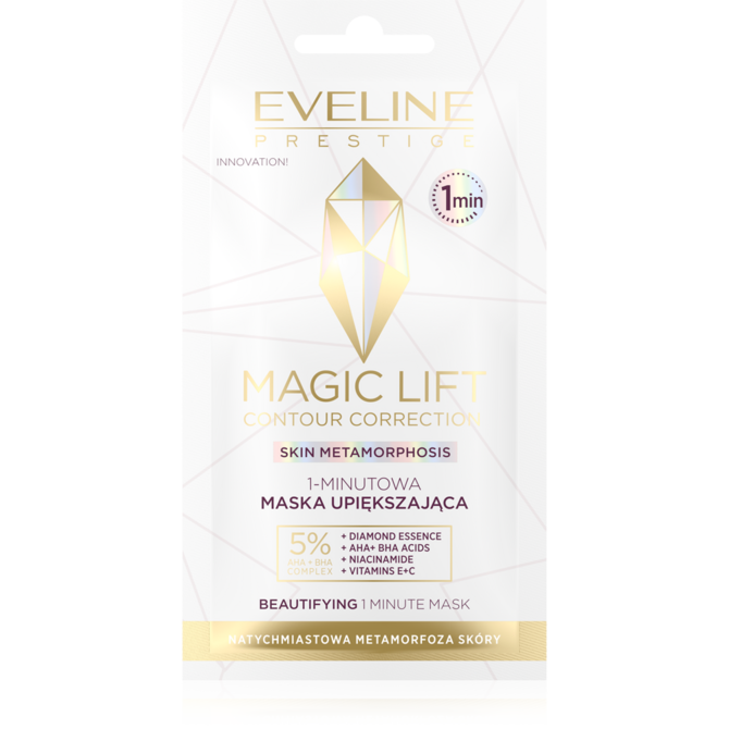 Natychmiastowa maska upiększająca z kompleksem AHA+BHA, esencją diamentową i witaminami E+C. Gwarantuje natychmiastowe wygładzenie, rozjaśnienie i nawilżenie w zaledwie minutę.