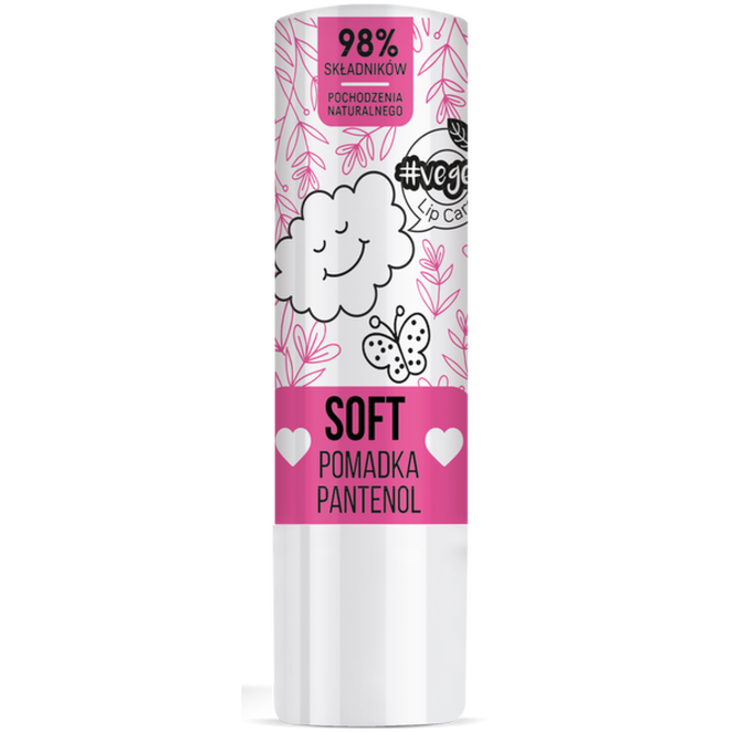 Wegańska pomadka do ust z pantenolem doskonale pielęgnuje i łagodzi delikatny naskórek warg. Tworzy na ustach bezbarwny film, który chroni je przed działaniem czynników środowiskowych, m.in. wiatrem i chłodem.