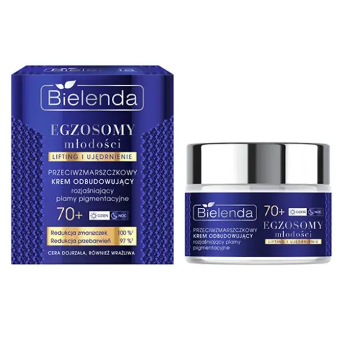 Bielenda Exosomes Anti-wrinkle Cream that rebuilds and brightens discolorations is an advanced treatment designed for mature skin struggling with problems such as wrinkles, discoloration, and uneven skin tone.
