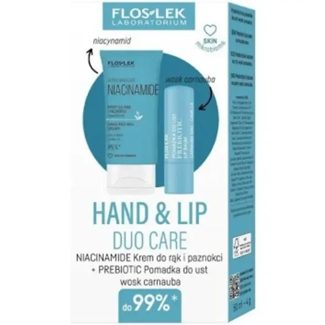 FLOSLEK HAND & LIP DUO CARE- Active Hand Care Niacynamide 50 ml + Pomadka PREBIOTIC Wosk Carnauba 4 g