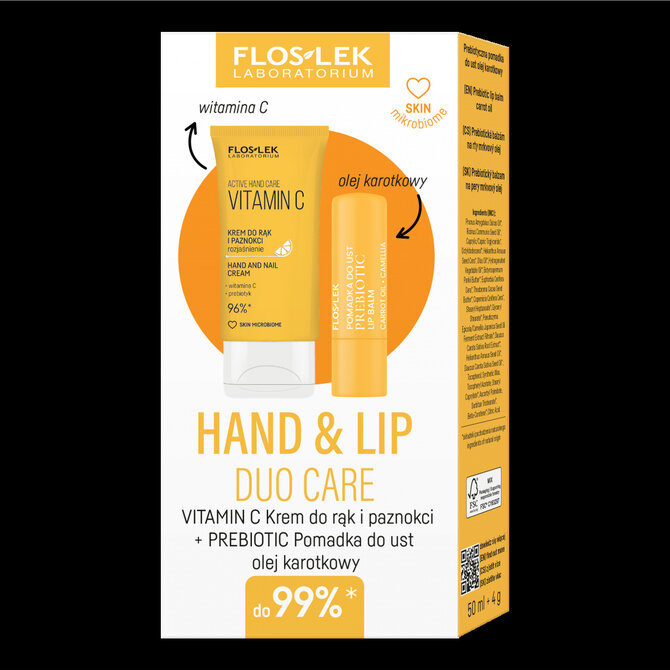 FLOSLEK HAND & LIP DUO CARE Active Hand Care Vitamin C 50 ml + Pomadka PREBIOTIC Carrot Oil 4 g
