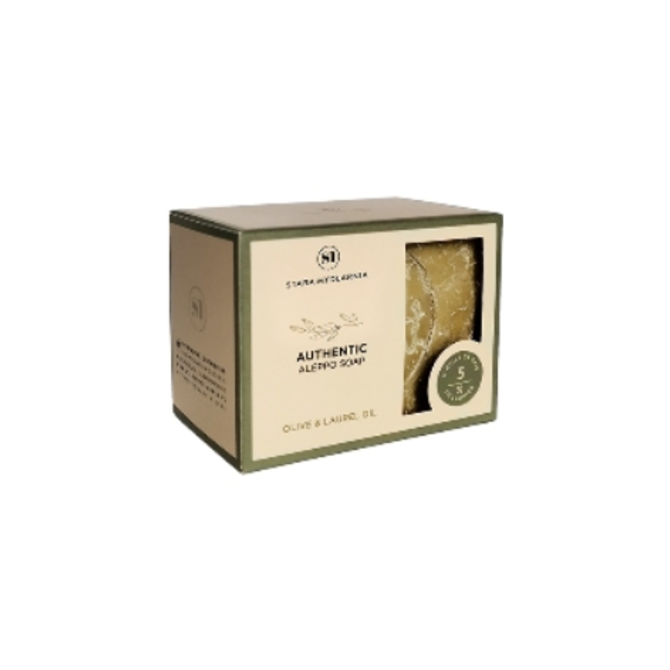 Aleppo soap, handmade in Syria based on a traditional recipe with a long maturation process. The main ingredients of the soap are olive oil, laurel oil (5%) and soda lye.