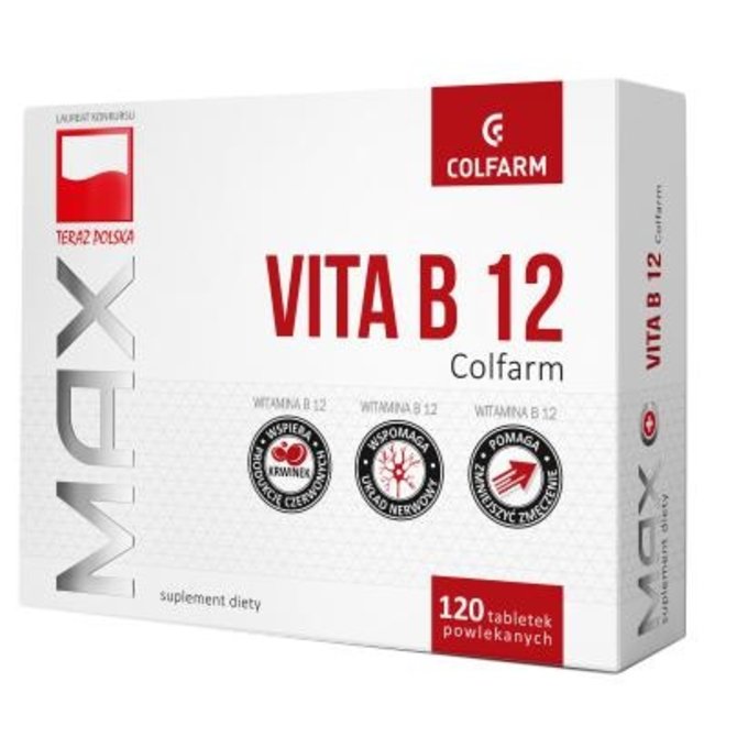Colfarm Vitaminum B12 is a dietary supplement intended for everyday use to supplement vitamin B12 deficiencies.
